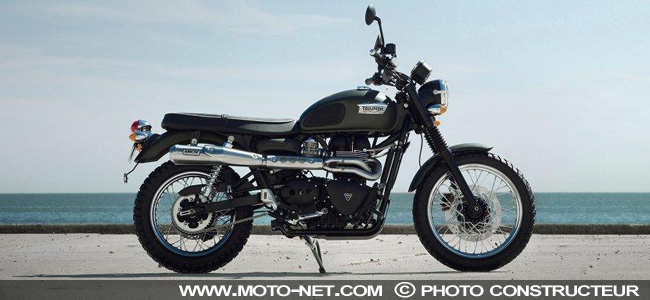 "Interprétation moderne d'un classique indémodable, la Scrambler attire l'attention partout où elle passe. Inspirée par les Triumph tout terrain sportives des années 60, dépouillées pour la compétition, la Scrambler possède un look unique et une force de caractère bien à elle. Ajoutez les détails de style classique tels que les soufflets de fourche et les pots latéraux chromés surélevés, et vous comprendrez pourquoi la Scrambler rappelle ces motos Triumph classiques".