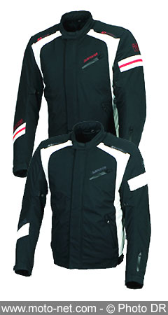 Disponible du S au XXXXL en noir-blanc-rouge ou noir-blanc-gris, le blouson toutes saisons Bering Uzy est vendu au prix de 299 € chez tous les revendeurs de la marque.