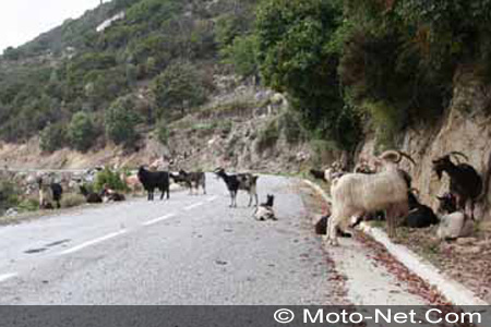 Aussi débonnaires que les autres animaux, ils interrompent à peine leur repas à notre passage. Quant aux chèvres, elles sont encore plus indifférentes à la circulation !