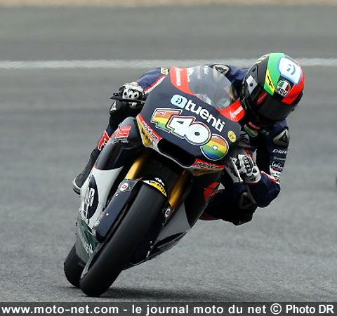 Marc Marquez suit cette bagarre de très près et cherche lui aussi la faille sur Redding avec Corsi dans son sillage. Derrière, le trou est fait : Bradley Smith ne parvient plus à suivre la cadence et apparaît déjà à plus de deux secondes du leader. L'Anglais précède Claudio Corti, Thomas Lüthi, Dominique Aegerter et Alex de Angelis.