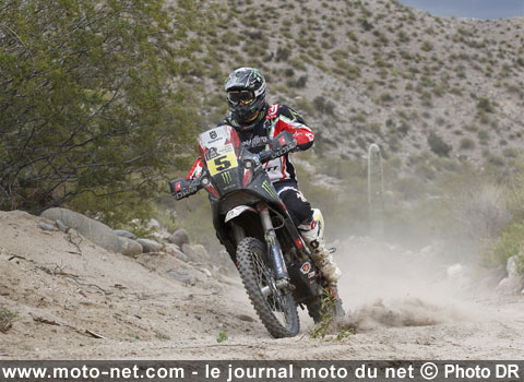 Pénalisé par des problèmes mécaniques avant-hier, l'officiel KTM a pu rebondir sur cette 8ème étape grâce à la solidarité d'un autre pilote Katoche qui a obligeamment accepté d'échanger son moteur avec lui.