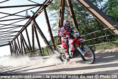 A l'arrivée, le prometteur pilote anglais (2ème du récent Rallye du Maroc) était suivi de près par Paulo Goncalves (+ 5 sec), l'un des prétendants à la victoire finale sur une CRF450 Rally du HRC.
