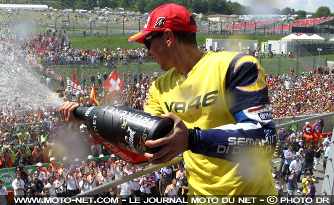 Le Grand Prix d'Italie 2010 restera désormais avant tout dans les mémoires comme celui du forfait de Valentino Rossi : pour la première fois depuis son arrivée au sein du Continental Circus en 1996, le pilote italien n'a pas pris la piste et n'a pu exécuter son numéro habituel... le 46, bien sûr ! (lire MNC du 5 juin 2010 : 4 à 5 mois d'absence pour Rossi selon son chirurgien et ses déclarations ci-dessous)