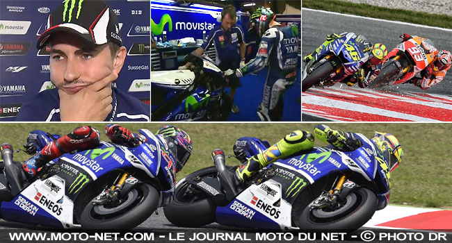 La mine sombre et le visage fermé à l'arrivée, le n°99 invoquera des problèmes de motricité du train arrière pour expliquer son rythme inférieur. Étrangement pourtant, c'est vers son pneu avant que Lorenzo s'est penché lors de son retour au box, son équipe technique inspectant ensuite sa gomme avant avec la plus grande attention (voir vignette ci-dessous)...