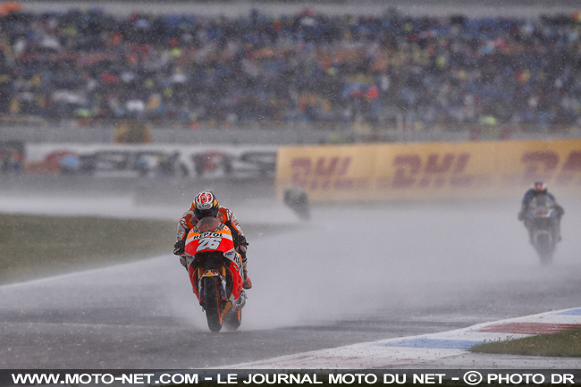 Dani Pedrosa, Honda-Repsol (15ème en qualifs et 12ème en course) : «Ce week-end fut bien compliqué, mais dans des cas comme celui-ci c'est un peu une loterie. Durant la première moitié de course, avec le pneu soft, notre stratégie semblait bien fonctionner. J'étais un peu plus lent quand la piste s'est mise à sécher, mais quand la pluie a fait son retour j'ai rapidement su trouver mon rythme, alors que les autres étaient à la peine".