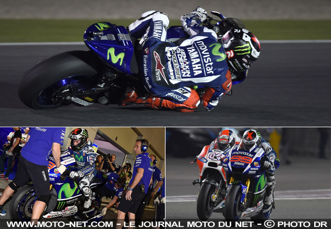 Pour Lorenzo cependant, l'affaire n'a pas exactement tourné comme prévu... D'abord car son coéquipier Valentino Rossi s'est montré un soupçon plus rapide : 1'55.267 dans le 5ème tour (nouveau record du tour en course au Qatar) contre 1'55.428 lors de la meilleure boucle de Lorenzo. L'air de rien, c'est 0,161 sec à l'avantage du n°46.