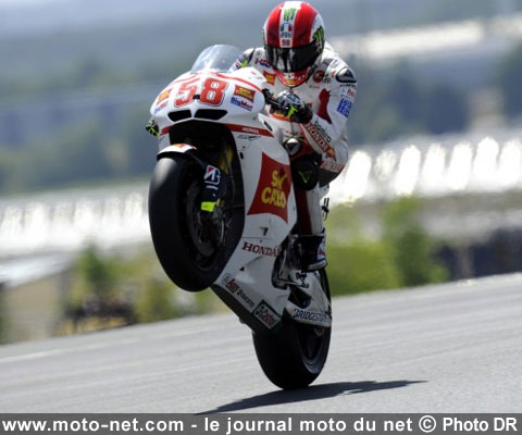 Ambitionnant le podium, voire la victoire à Montmelo, le pilote du team Honda Gresini a confirmé l'étendue de son talent ce matin en décrochant le meilleur chrono du warm-up sur une piste détrempée par des ondées nocturnes.