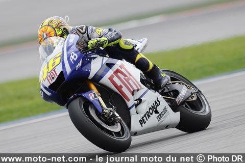 Expulsé violement au dessus de sa M1, Jorge Lorenzo se relève indemne et son incroyable chrono en 1'48.853 réalisé le tour précédent suffira à contenir son coéquipier Valentino Rossi 1'49.435), Andrea Dovizioso (1'50.007), Casey Stoner (1'50.081) et Colin Edwards (1'50.313).