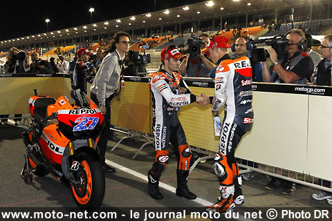 Analyse Moto-Net.Com : A le voir gesticuler et haranguer son équipe sur le podium, on aurait pu penser que le vainqueur de la première course de la saison 2011 était Jorge Lorenzo ! Il est vrai que le champion du monde en titre nourrissait quelques inquiétudes avant le départ, tant la piste qatarie mettait en avant la supériorité des RC212V particulièrement véloces et équilibrées...