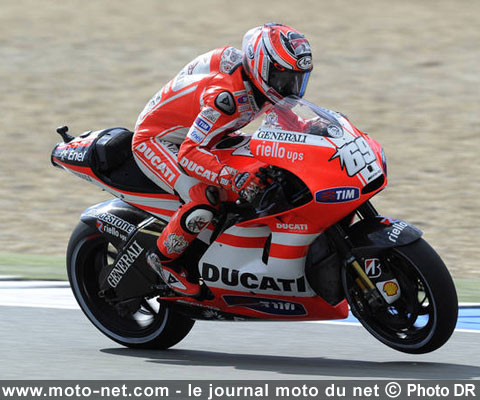 L'Américain patauge lui aussi dans la mise au point de sa Ducati et a commis deux erreurs en course qui lui ont coûté de précieuses secondes. Plus inquiétant en revanche, son meilleur chrono en course - à seulement 64 millièmes de celui de Rossi ! - tend à montrer que les bénéfices offerts par la GP11.1 et sa nouvelle boîte de vitesse n'ont pour l'instant rien de transcendant...