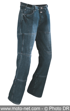 Pour l'été et les courts déplacements - bien que les statistiques d'accidentologie montrent que les risques ne sont pas forcément liés à la distance parcourue -, le manufacturier français Ixon propose un jean assez sobre et discret dont les parties au niveau des fesses, des hanches et des genoux accueillent des renforts en Kevlar.