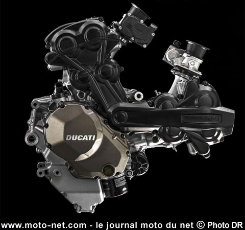 Avec pour effet secondaire d'abaisser les rejets polluants, permettant ainsi à Ducati d'annoncer que son moteur à distribution variable satisferait déjà aux normes anti-pollution Euro 4. Ce moteur, appelé Testastretta DVT, est utilisé pour la première fois sur la Multistrada 1200 (relire notre Comparo contre la Tiger Sport et la Caponord).