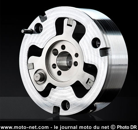 "Le système DVT est composé d'un boîtier externe, solidaire de la poulie qui actionne la courroie de la courroie de distribution, et d’un mécanisme interne qui est relié à l'arbre à cames et qui peut tourner de façon indépendante à l'intérieur du boîtier", développe Ducati, qui assure que ce système n'impacte pas l'intervalle de réglage du jeu aux soupapes de son bicylindre, toujours programmé tous les 30 000 km.