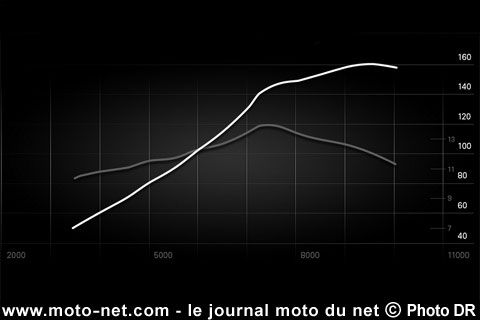En toute logique, les côtes du "L-Twin" de 1198cc n'évoluent pas suite à l'adoption du DVT (106 x 67,9 mm), tandis que le système de double allumage Dual Spark (deux bougies par cylindres) est reconduit. Sa puissance est en revanche portée à 160 ch à 9500 tr/mn et son couple à 136 Nm à 7500 tr/mn. Soit un gain de 10 ch et de 11,5 Nm par rapport au bicylindre de l'actuelle Multistrada, aussi utilisé sur le Diavel et le Monster 1200(voir graphique fourni par Ducati ci-dessus).