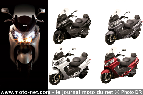 Coiffant la gamme scooters du constructeur taïwanais, le Maxsym 400 débarquera dans les concessions Sym au mois d'août et se déclinera en quatre coloris : noir, gris, blanc et rouge.