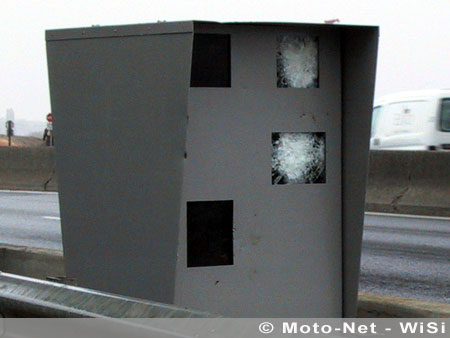 Moins de 48 heures après son inauguration (lire Moto-Net du 28 octobre 2003), le nouveau radar automatique de la RN20 a été mis hors d'usage cette nuit : les deux vitres protégeant le flash et la caméra numérique ont été cassées "à coup de masse ou de pavé", rendant vraisemblablement l'appareil complètement aveugle malgré les déclarations conjointes de l'intérieur et des transports assurant que "le radar n'a jamais cessé de fonctionner"...