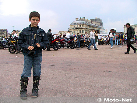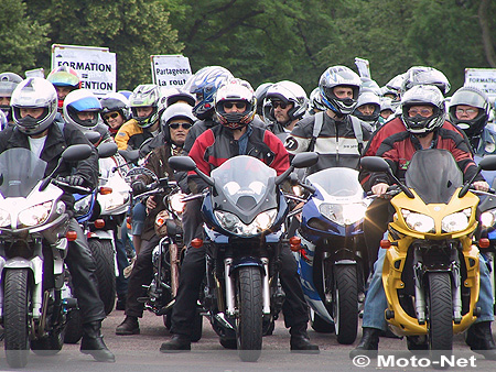Environ 5 000 motos - 1 500 selon la police - ont sillonné les rues de Paris cet après-midi pour protester contre la loi sur la sécurité routière, publiée hier au Journal officiel. Réunis sur l'esplanade du Château de Vincennes, au pied d'un imposant camion sono ceint de la traditionnelle - mais toujours efficace - banderole "Répression piège à cons", les motards ont pu écouter les discours de Frédéric Brodziack, membre du bureau national de la FFMC, et de Patrick Jacquot, président de la Mutuelle des motards.