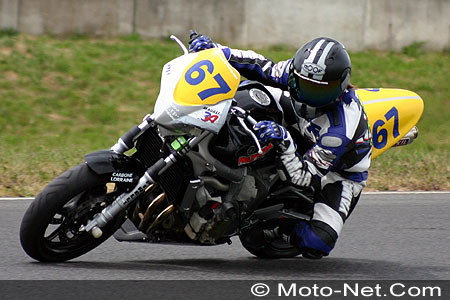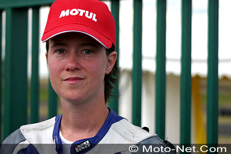 Elle relègue ainsi à près de deux secondes les deux autres pointures, Evelyne Roques, ancienne gagnante du Trophée féminin en 1993 (Honda 600 Hornet n°95, 1'12.582), et Magalï Langlois (Yamaha 600 Fazer n°67, 1'12.831), 26ème scratch au Mans cette année (lire Moto-Net des 3 et 4 avril 2004) et qui prendra le départ du Bol d'Or au guidon d'une Yamaha R1 2004 (lire Moto-Net du 26 avril 2004).