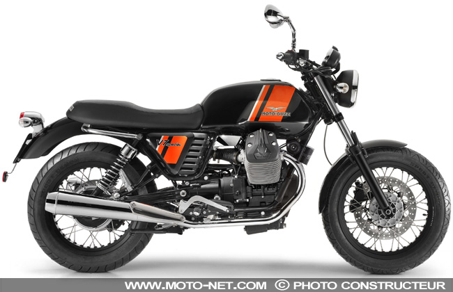 Des trois V7, la Special est la plus proche des V750 d'antan. En 2014, elle se décline en deux coloris : argent métallique à bandes noire ou noire à bandes orange. Sur les deux versions, le logo sur le réservoir est gravé et les jantes sont noires au lieu d’être chromées.