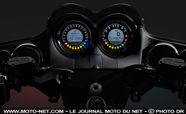 Issu de la California, ce "big bloc" est annoncé pour "121 Nm" de couple et se commande depuis un accélérateur électronique "ride-by-wire". Des modes de conduites, l'ABS, l'anti-patinage et un régulateur de vitesse sont aussi de la partie, en série. La console de bord est résolument moderne avec deux cadrans composés d'écran LCD sur lesquels apparaissent beaucoup d'informations et un système audio intégré.