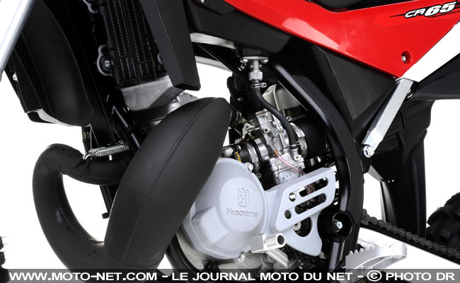 Afin de mettre le pied à l'étrier aux amateurs de tout-terrain en culottes courtes, Husqvarna lance une mini-cross de 65 cc à moteur deux-temps refroidi par eau : la CR65.
