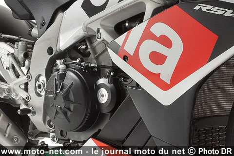 L'arbre à cames adopte de son côté un nouveau profil et perd au passage 500 grammes. Pour assurer une fiabilité optimum à ce bloc fortement comprimé (13,6:1) et aux cotes super-carrées (78 x 52,3 mm), Aprilia a totalement redessiné le circuit de lubrification. La boîte de vitesses - équipée en série d'un embrayage anti-dribble - voit quant à elle son étagement optimisé pour s'accorder aux nouvelles performances.