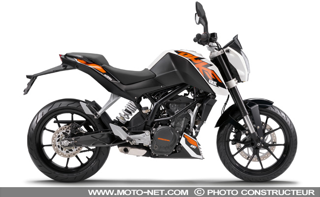 Et comme ci ça ne suffisait pas, la "mini" Duke sera dorénavant équipée du disque avant de 300 mm monté sur la version 200 cc de la Duke (au lieu de 280 mm jusqu'à maintenant). Ainsi, la plus petite des KTM de route pourra se targuer d'avoir "fait les freins" non seulement à la petite Honda, mais aussi aux 125 les plus sportives.