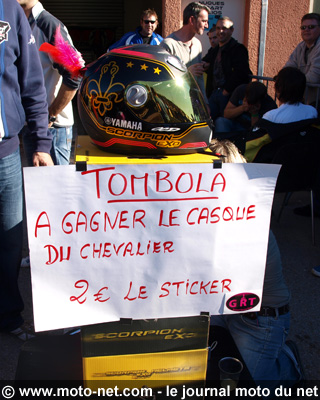 Dans le box n°1, celui de Serge Nuques, Sylvain Bidart et William "Wil" Millios, notre confrère de Moto et Motards, c'est l'ambiance grolandaise habituelle. L'infâme Chevalier organise une tombola pour faire gagner son dernier casque Scorpion Exo 750 à plumeau tandis que Lucas "Bernardo" Mahias, le protégé de Sergeï brillant vainqueur de la Pirelli Cup 2010, s'adonne à une série d'autographes sur tous supports... Les deux compères préparent leur déplacement à Jerez le week-end prochain, où Lucas va participer à la finale du Championnat d'Espagne de vitesse en Moto 2. Il est encore temps de leur donner un coup de pouce : appel aux éventuels partenaires de dernière minute !