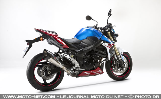 Revêtue d'une robe aux couleurs du team officiel Suzuki en endurance, la GSR750 SERT Replica se distingue aussi de l'originale par son capot de selle et son sabot moteur spécifiques, ses lisérés de jantes rouges.