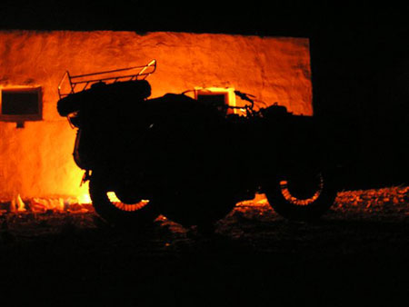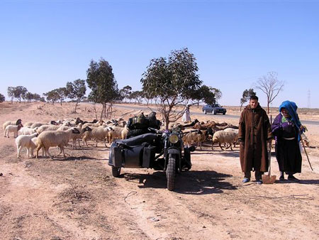 Il fait frais pourtant c´est l´autre côté de la Méditerranée. Il faut sortir rapidement de la " civilisation " et alors là ça commence à interpeller les mémés que nous sommes. Effectivement, nous sommes venues pour la piste, le sable, le sel, les nuits à la belle étoile mais aussi pour contrôler si nos pilotes et passagers sont capables de rapports simples avec l´environnement et les gens. Pour nous, pas de problème car une fois admis que le filtre à air d´une R75 n´est pas un casque allemand, la sympathie est acquise.
