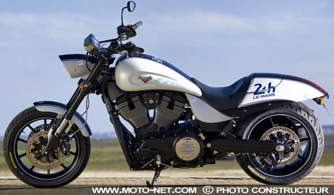 De son côté, Victory fournit une Hammer LE "24 Heures Le Mans Limited Edition" dessinée par Pierre Audoin himself et Greg Brew, chef du département Design chez Polaris à Minneapolis, "papa des nouvelles motos Indian, notamment", nous apprend notre interlocuteur.
