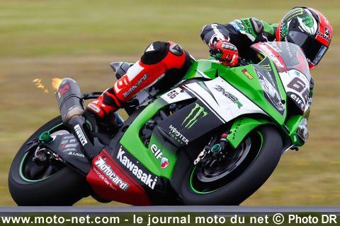 Devancé par Jonathan Rea et sa Kawasaki en première manche de quatre centièmes de seconde, Leon Haslam s'est imposé sur son Aprilia en seconde manche... d'un seul centième ! Davies et sa Ducati complète encore le podium. Seconde course Superbike La Kawasaki n°65 se cabre à l'extinction des feux rouges mais cela n'empêche pas le poleman Jonathan…