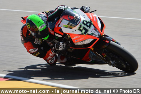 À quatre tours de la fin, les deux hommes de tête comptent près de cinq secondes d'avance sur Michael Van den Mark, et plus de neuf secondes sur Russo, Antonelli et Scassa. Zanetti mène un second groupe composé de Marino, Leonov et De Rosa.Le duel pour la victoire se poursuit entre la Kawa' de Foret et la Yam' de Lowes. En attaquant pour l'avant-dernière fois la ligne droite des stands, la R6 ne prend pas ses tours ! Foret décale sa ZX-6R et déboite le malchanceux - un de plus à Aragon ce dimanche ! - Sam Lowes.