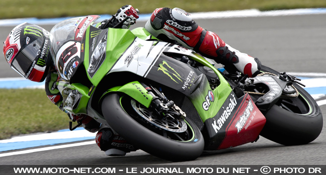 Sur la piste, Jonathan Rea se loge dans l'aspiration de Chaz Davies et déboite le pilote Gallois et sa Ducati dans la ligne droite du retour en descendant vers les Esses du King Foggy ! Le leader remonte donc sur le podium, qu'il n'a jamais loupé en 11 courses cette saison.