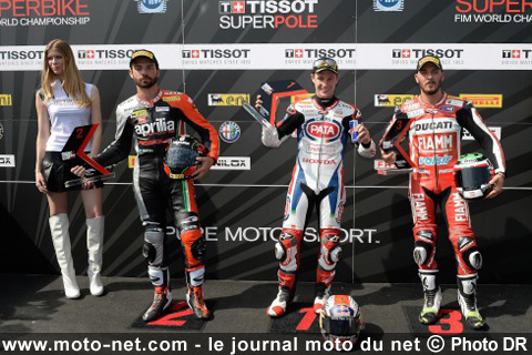 Un quart de seconde moins rapides que la Superbike de Tokyo et séparées d'un millième de seconde seulement, l'Aprilia pilotée par Sylvain Guintoli et la Ducati de Davide Giugliano complèteront le premier rang lors des deux départs donnés demain : à 10h30 puis à 13h10.
