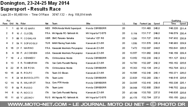 Les pilotes de Supersport ont profité de bonnes conditions météo pour livrer un superbe spectacle cet après-midi à Donington Park ! Jules Cluzel s'est battu pour la victoire jusque dans le dernier virage, mais Michael van den Mark était plus fort... Course Supersport Kenan Sofuoglu prend un départ canon et poste sa Kawasaki n°54 devant Patrick Jacobsen,…