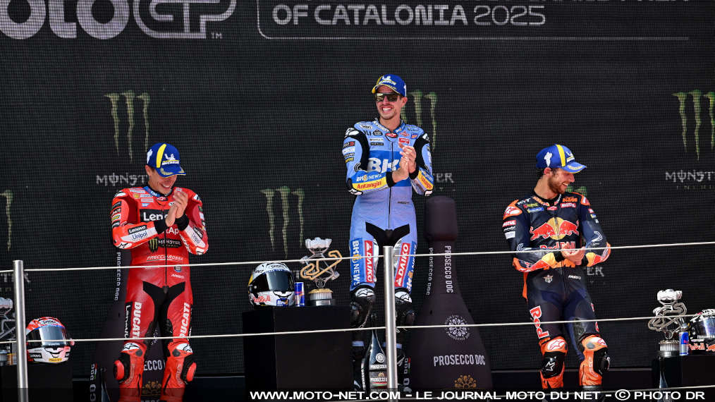 Alex Marquez repousse l'échéance vers le titre de son frère Marc avec une victoire nette et sans bavure en course principale du GP de Catalogne 2025, qui vient compenser sa chute au sprint. Fabio Quartararo, 2ème puis 5ème, signe un excellent week-end sur la Yamaha, alors que Johann Zarco termine au tapis.